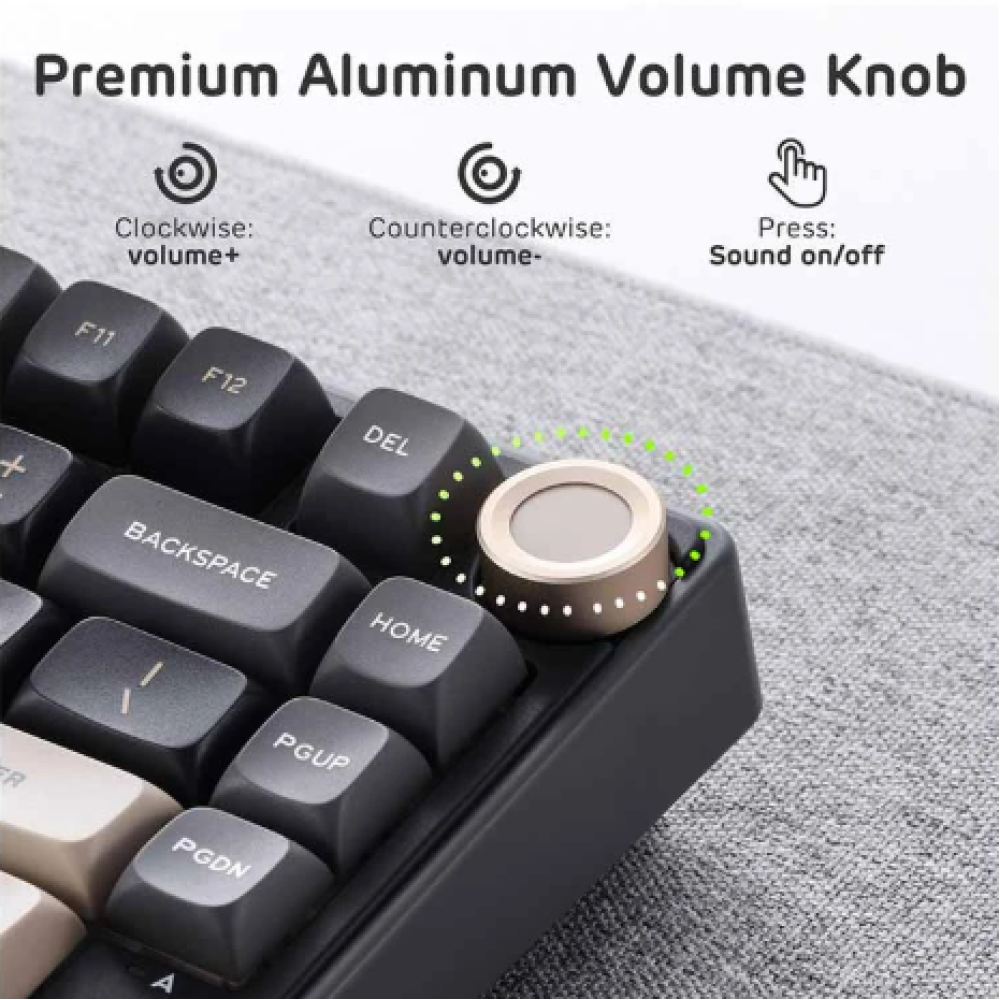 Yes, the Royal Kludge RK R75 supports software customization, enabling you to fine-tune RGB lighting effects, macros, and key assignments.4. What is the benefit of the CNC aluminum volume knob?